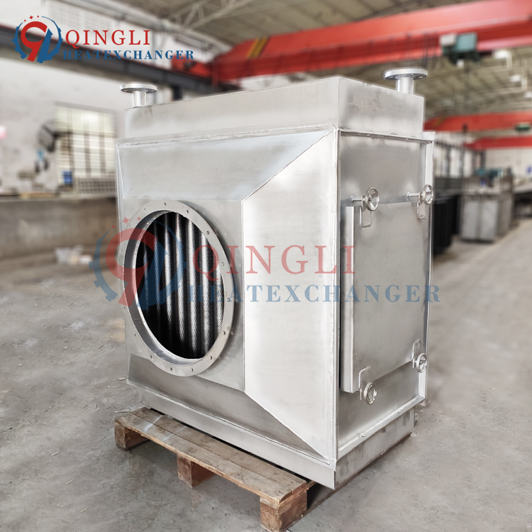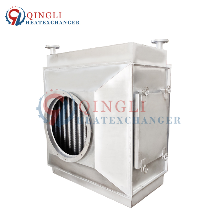 产品简介:锅炉烟气冷凝换热器,通过热交换原理降低锅炉烟气排放温度,回收烟气余热。节能器优选不锈钢原材料,高质耐用防腐,底部带有清洗口,便于清洗维护过程污水排放。